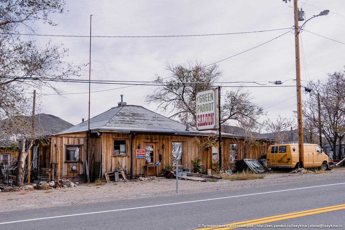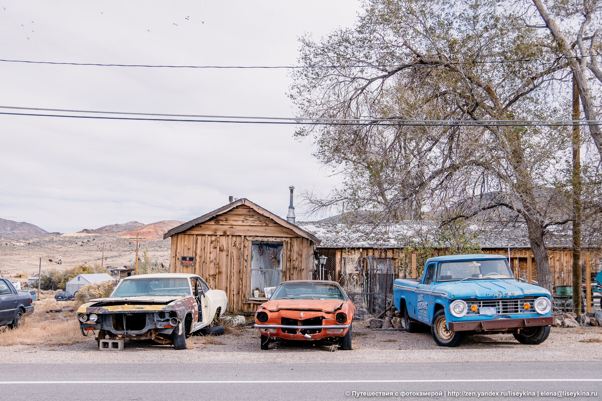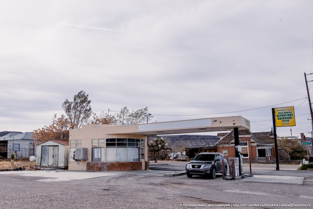 Ближайшая действующая заправка — в 40 километрах, в городке Тонопах. Он выглядит не лучше, но расположен на перекрестке федеральных трасс, что пока позволяет бизнесу держаться на плаву.