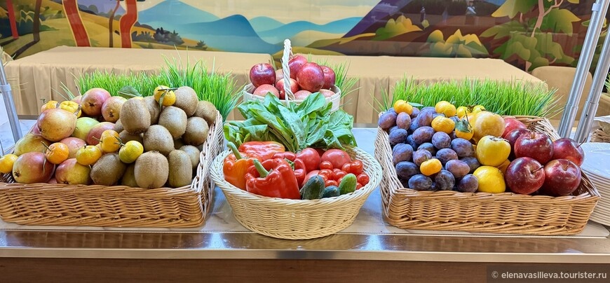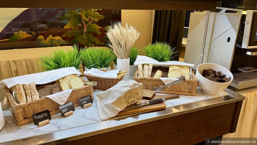 Помимо основного меню, для детей работает шведский стол с наггетсами, картошкой фри, пюре и макаронами с сыром. Этот стол пользовался спросом и у взрослых благодаря простоте и качеству. Также есть отдельный стол с хлебобулочными изделиями
