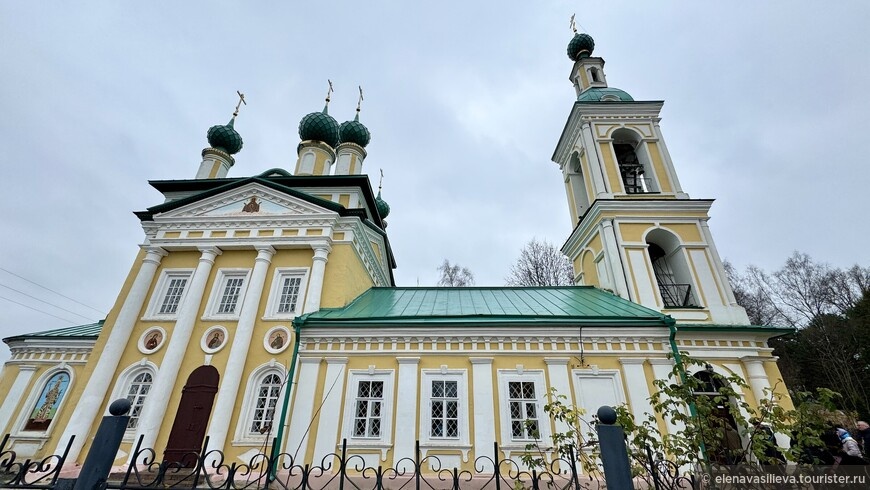 Затем мы посетили отдалённую церковь — Храм Святого Благоверного Димитрия Угличского На Поле (1798–1814). Храм никогда не закрывался, в советские годы был единственным действующим. Сохранился резной иконостас и росписи.