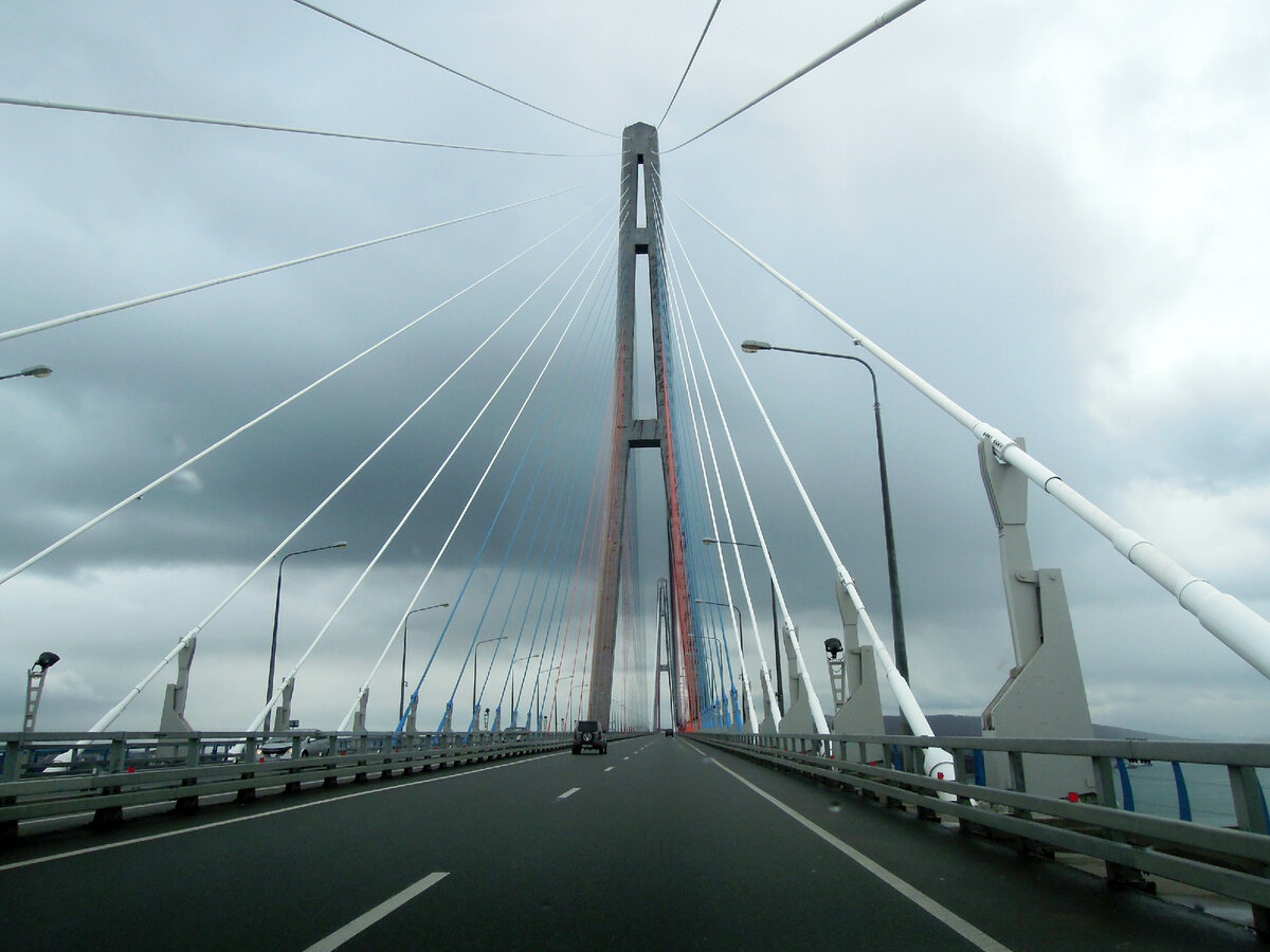 Второй объект — Русский мост, который до мая 2018 года оставался самым длинным в России (более 3 километров), пока его не обогнал Крымский. Его возводили в экстремальных условиях: сильные ветры, влажный климат и резкие перепады температур. Благодаря специальной стали, ванты выдерживают диапазон от -40 до +40 градусов, а срок их службы достигает ста лет. Аэродинамическое сечение конструкции делает её устойчивой к шквалистым ветрам, типичным для Владивостока. Думаю, это уникальное сооружение вполне могло бы украсить российскую купюру.