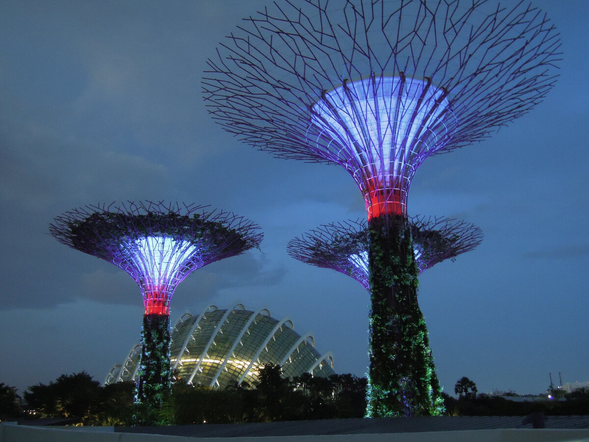 В Сингапуре множество оригинальных достопримечательностей. «Сад у залива» — это парковая зона с оранжереями, скульптурами и футуристическими деревьями.
