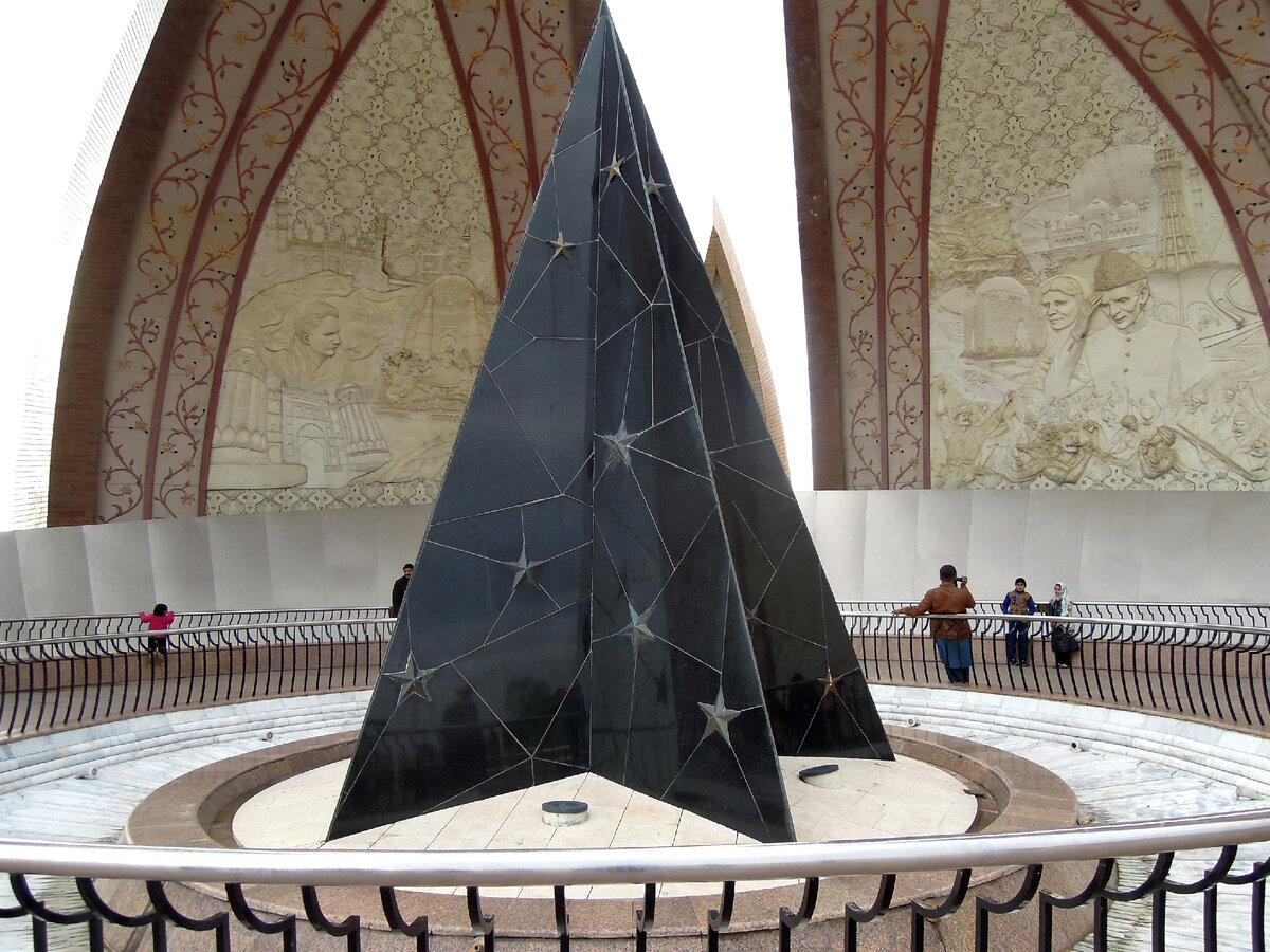 На внутренней стороне лепестков — фрески, изображающие героические подвиги пакистанцев. В центре — пирамида с четырьмя углами, опять же символ провинций. Вокруг разбит парк, популярный у туристов и местных жителей. Независимость, полученная от британцев, оказалась с подводными камнями. Англосаксы не учли конфессиональную дифференциацию: Кашмир с мусульманским населением остался в Индии, где ислам не типичен. Пакистан же исповедует ислам. Это была не ошибка, а преднамеренное действие, чтобы не допустить возникновения мощных независимых государств и оставить возможность для управляемых конфликтов.
