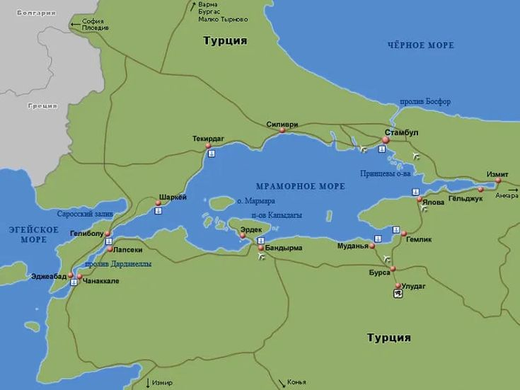 Это небольшое внутриматериковое море, соединяющее Эгейское и Чёрное моря, расположено рядом со Стамбулом. Оно менее популярно среди туристов. Через него проходят оживлённые судоходные маршруты, на берегах сосредоточены промышленные объекты, вода мутная и не отличается прозрачностью. Тем не менее, здесь есть несколько курортов с необходимой инфраструктурой, включая оборудованные места для рыбной ловли (промышленной и частной), где ловят ставриду, скумбрию, анчоусов, пеламиду и другие виды. Пляжный сезон начинается в июне и длится до начала или середины октября.