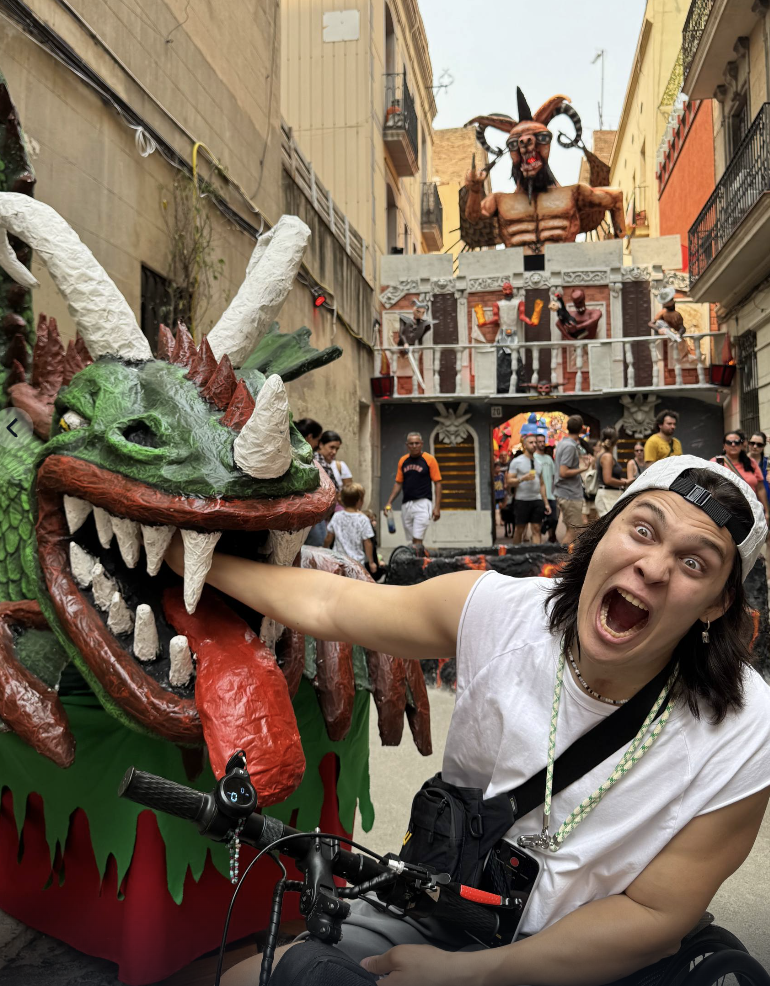 В день фестиваля разрядилась электропанель на коляске. Я договорился с владельцем ближайшего кафе, чтобы он за небольшую плату поставил приставку на зарядку, и забрал её после прогулки. К счастью, это не помешало нам насладиться праздником. Пробираться сквозь толпу было непросто, но люди старались меня пропускать, и инфраструктура оказалась доступной. К фиесте даже выпустили карту с отмеченными специализированными туалетами — для меня такое количество доступных санитарных узлов стало настоящим событием.