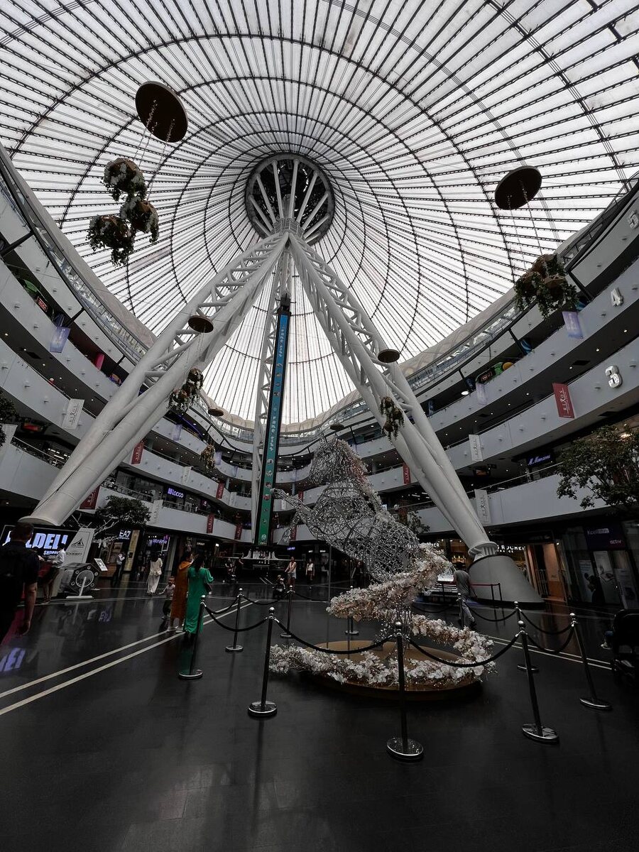 Парковка была забита, что навело на мысль, что и тут мы не попадем. Здание оказалось торговым центром: на нижних этажах — магазины, выше — парк аттракционов, на последнем этаже — аквапарк. Нам сказали, что свободных шезлонгов нет. Мы погуляли по ТЦ, прокатились на паре аттракционов и решили попробовать вернуться в аквапарк рядом с домом.