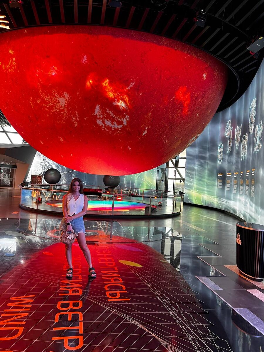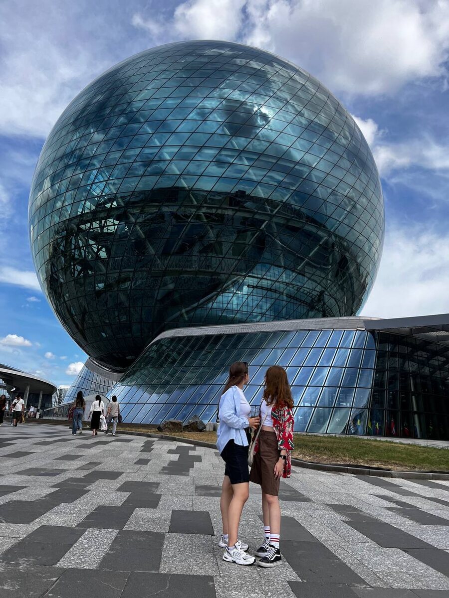 В последний день мы отправились в музей «Нур-Алем», посвященный возобновляемой энергетике. Здание в форме шара было построено в 2017 году к выставке и считается самым высоким сферическим строением в мире. Выглядит оно футуристично, словно космический корабль. На каждом этаже представлены экспозиции о «зеленой» энергии: солнечной, ветровой, кинетической, из биомассы. Особенно поразило тротуарное покрытие, преобразующее кинетическую энергию шагов в электричество. Экспозиции интерактивны и интересны как детям, так и взрослым. Было много детей, и видно, что им действительно интересно.