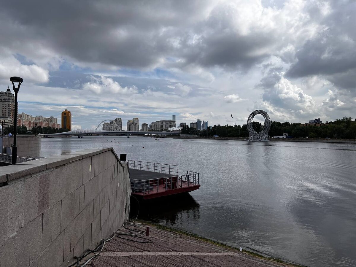 В этот день машина неожиданно потребовала небольшого ремонта, поэтому мы посвятили время покупке домашних «заказиков» и сувениров, а также пешим прогулкам. Была мысль покататься на прогулочном катере по реке, но погода подвела. Так что мы просто ходили по магазинам, гуляли и ужинали в кафе. Из традиционных казахстанских сувениров мы обычно привозим курт и чай. В этот раз нам заказали привезти тарелку с изображением Астаны, которую пришлось долго искать.